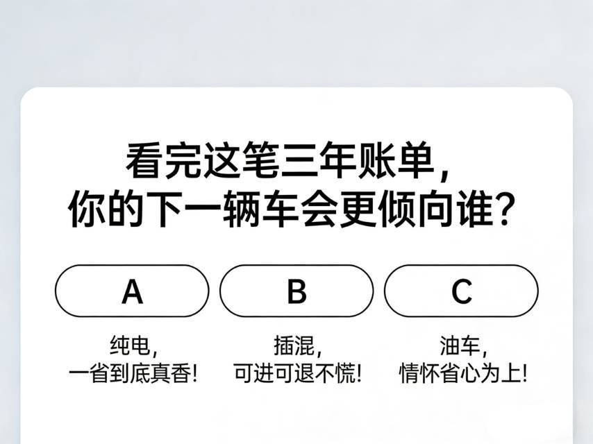 春节前油价再上调,北京、上海加满一箱油得多花8块钱。这波“二连涨”,让很多人在油车和新能源车之间反复横跳。今天,咱们就算算账,把一辆家用车开三年(约4.5万公里)的真实成本摊开看看。