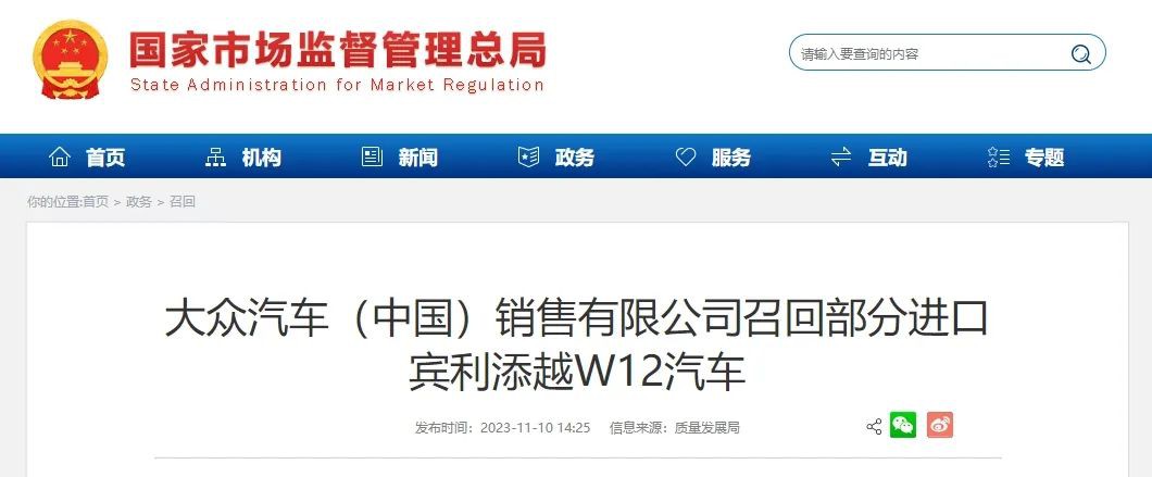 日前,大众汽车(中国)销售有限公司根据《缺陷汽车产品召回管理条例》和《缺陷汽车产品召回管理条例实施办法》的要求,向国家市场监督管理总局备案了召回计划,决定自2023年12月25日起,召回2016年1月30日至2018年11月19日期间生产的部分进口添越W12系列汽车,共计1177辆。