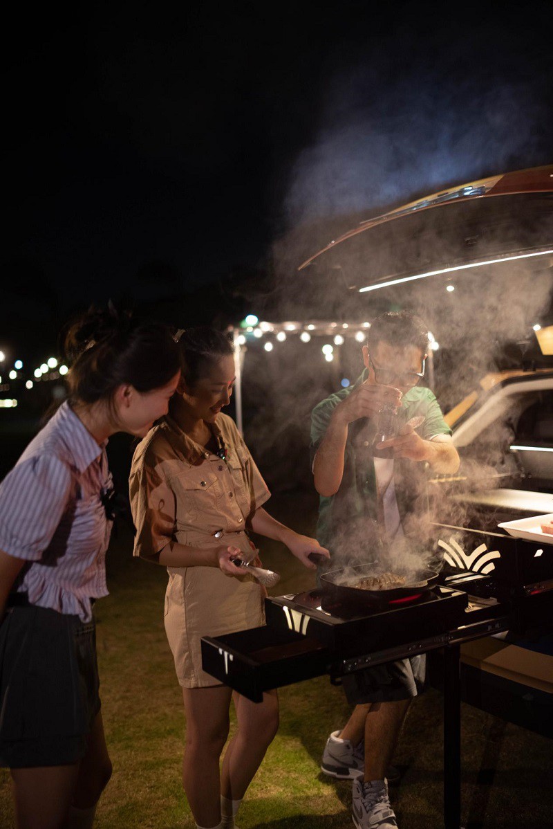 哪吒U露营特装版的后备箱也内有乾坤,已经被改装为三段式铝合金收纳箱,能够放下超大容量冰箱、电磁炉、厨具餐具等诸多野炊用具,配合标配的V2L对外放电功能,喝冷饮、吃热食随心所欲。