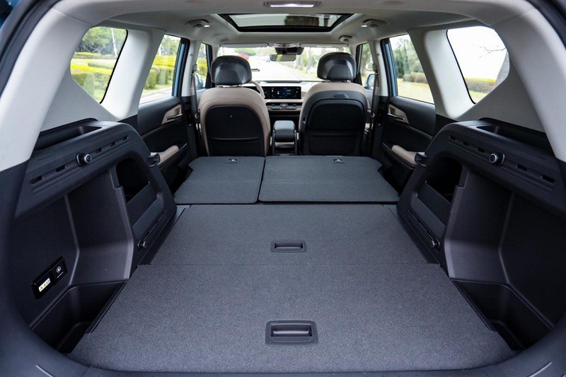 空间方面,EV5拥有同级领先的1,715mm车高,为用户提供了充足的头部空间。后排座椅还能0°纯平折叠,放倒后后备箱空间可扩大至1,718L,配合同级独有的67L超大容量前备箱,能放下旅途所需的琐碎物品。