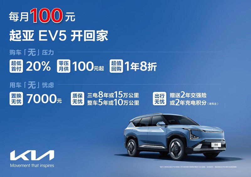月供低至100元,新车开回家!起亚EV5推出九重超值钜惠购车礼遇