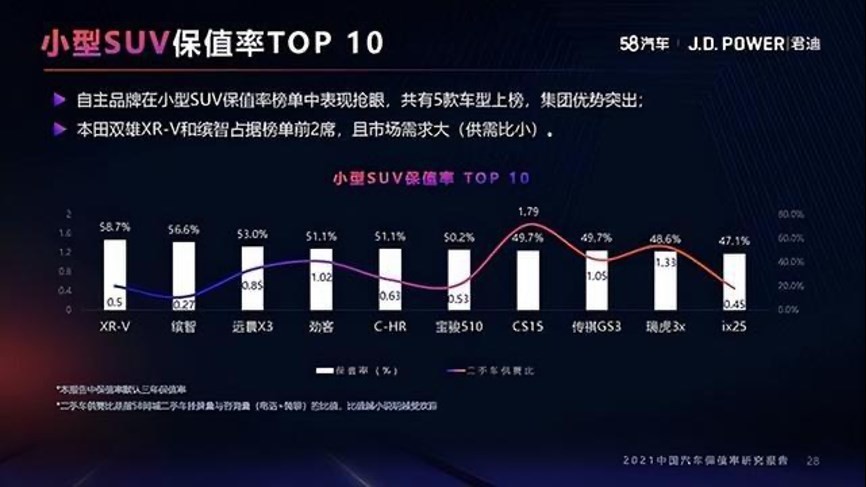 如果说百万销量是看得到的实力,那么高保值率则是XR-V的“隐形实力”。在J.D. Power发布的《2021中国汽车保值率研究报告》中,XR-V以58.7%的高保值率稳居细分市场第一。从2017年至今,XR-V已连续五年蝉联细分市场冠军,成为当之无愧的“保值王”。