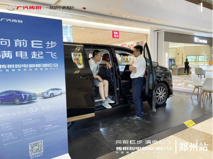 6月16日-6月24日,“向前E步 满电起飞“——广汽传祺E9商超定展”在郑州万象城隆重开展,现场气氛活跃,现场人员体验了传祺"E9" 车型,给出一致好评加推荐,传祺E9融合了广汽对豪华MPV市场的深度理解和前瞻洞察,在电动化和智能化产品体验上,充分满足消费者对智电新能源生活的美好向往。