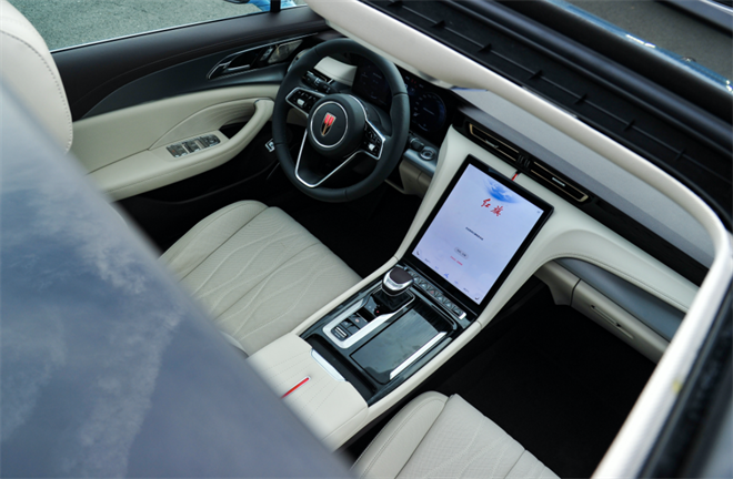 座舱加码,T字型布局中控台,12.6寸大屏,科技氛围拉满,自主研发的旗偲1.0智能网联系