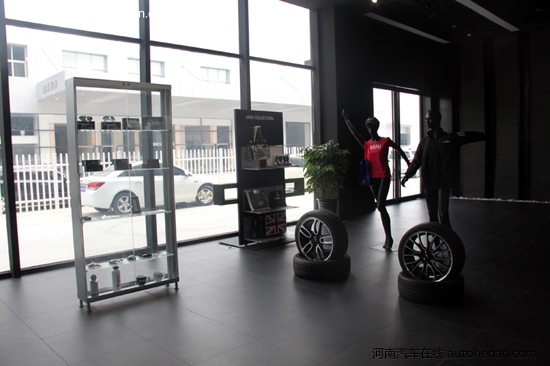 MINI城市展厅变身4S店,展示场所面积变大。展厅外围使用了大面积玻璃材质,充足的采光也是环保表现之一,玻璃中间黑色格子又很像橱窗的设计,彰显MINI的精致。河南英之翼位于郑州市花园路与杓袁路东北角,地处4S店集群中间,交通便利。