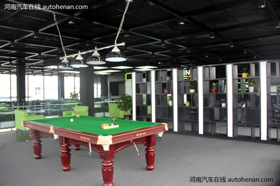休闲娱乐:河南英之翼汽车销售服务有限公司二层为车主提供了丰富多样的娱乐休闲项目,有台球、网络影音、影院、按摩休闲、客户餐厅、吧台茶水、精品展示等,让您充分体验MINI的独特文化。露天阳台更是其他4S店所不能媲美,维修保养的时候在这看一场电影,选购一些MINI生活精品,一定会为汽车生活加分。
