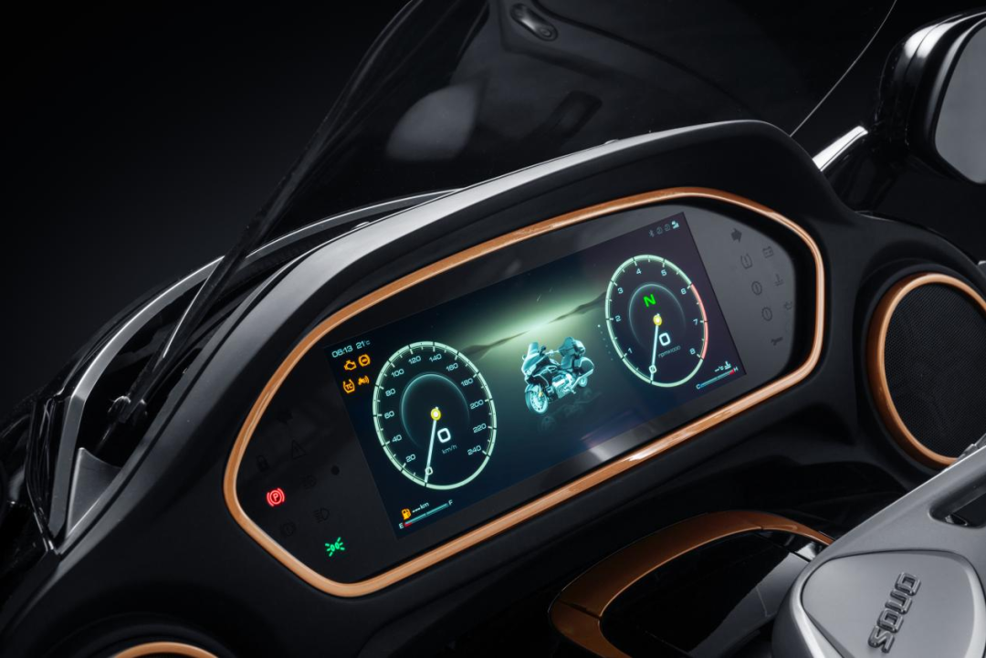 灵魂摩托的“智能座舱”来自于诺博科技,不仅车机采用了12.3英寸屏幕,采用了8155芯片,更支持语音控制。